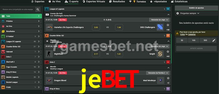 O jebet oferece uma grande seleção de opções de apostas em e-sports com probabilidades competitivas